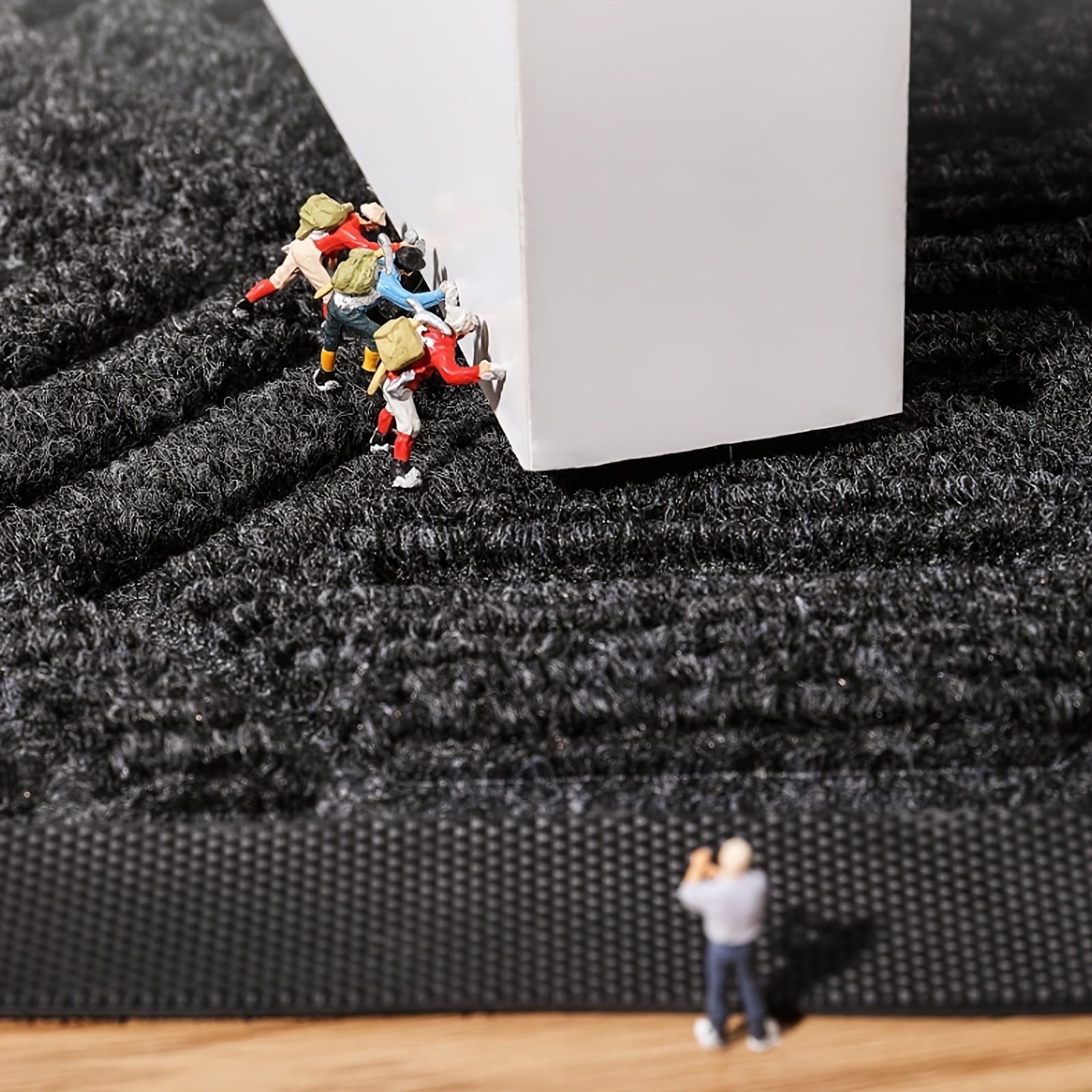 Heavy-Duty Anti-Slip Door Mat, Mud-Proof Washable Entrance Rug with Geometric Pattern, 24x36 Inch, Black Nylon Blend for Home and Balcony